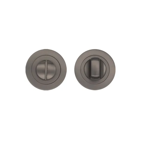A round thumbturn bathroom lock, finished in matt satin black, is a perfect match for any of our matt satin black feature door handles. The Deanta Door Thumbturn Set in Nickel with a Matt Satin Black finish is a stylish and functional accessory for internal doors.